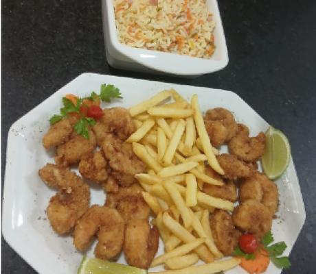 250g de camarão empanado na farinha panko, servido com molho rosé.