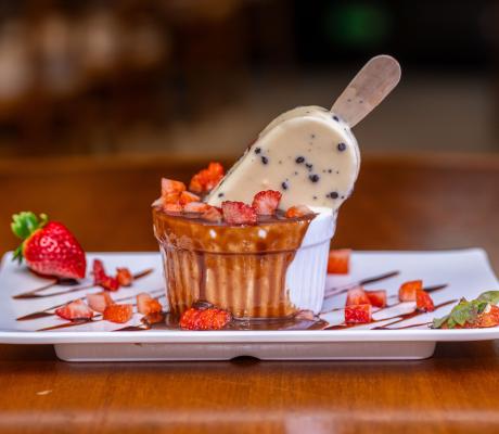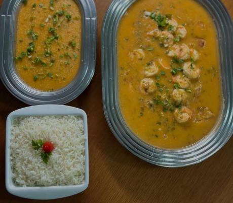 50g de camarões refogados com tempero maranhense à base de leite de coco, cobertos com creme de macaxeira gratinado com queijo parmesão.