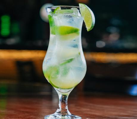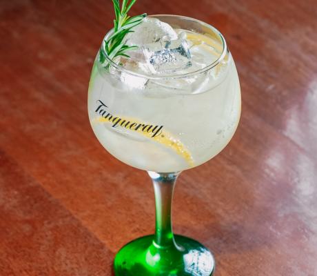 Alface americana com queijo parmessão ralado, croutons e camarões c/ molho reducao de vinho e molho caeser.