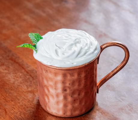 Mix de folhas com manga laminada, castanha de cajú e tomate seco marinado com iogurte natural e queijo parmessão