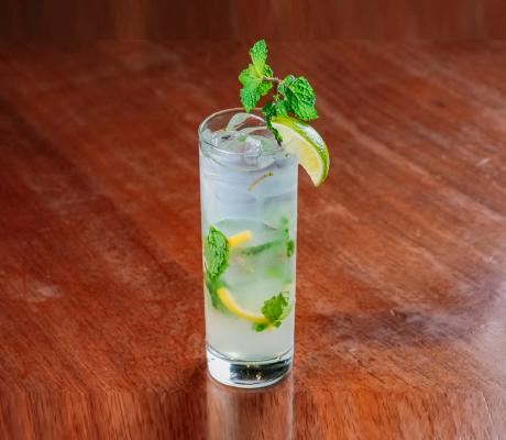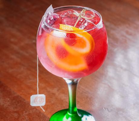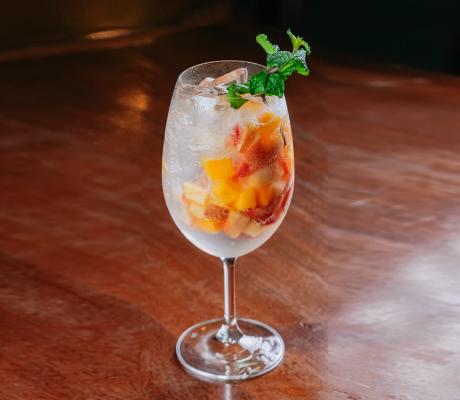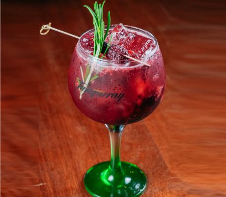 Mix de folhas com palmito, azeitona, queijo coalho, cenoura, tomate cereja e redução de vinho.