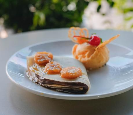 Filé de peixe grelhado com saboroso molho do chef, gratinado e servido com batata boulanger e arroz à grega.