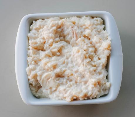 Filé de camarão, molho branco, champignon, ervilhas, presunto, queijo, mussarela gratinado, batata chips e arroz cremoso