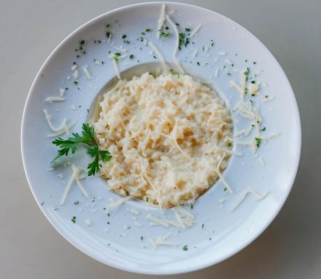 Filé de pescada grelhado, acompanhado de delicioso arroz cremoso de queijo parmesão e batatas gratinadas.