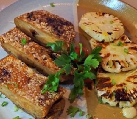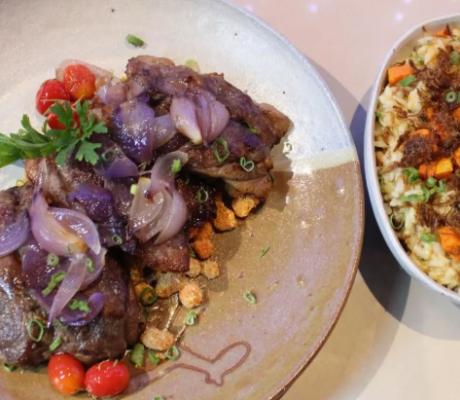 Risoto nordestino e farofa de abobora.
