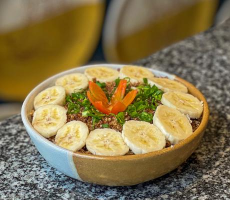 Risoto de maçã e farofa de banana.