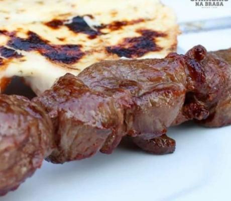 Acompanha macaxeira, pão de alho, cebola, farofa e vinagrete.