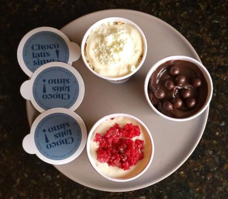 Brigadeiro de colher servido no pote 180ml.